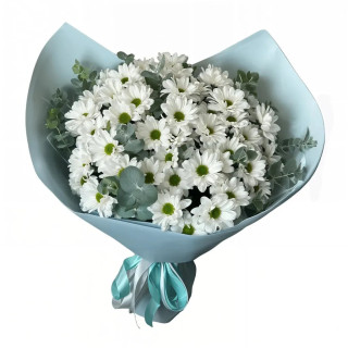 "Белая гармония" - воплощение нежности и чистоты в яркой упаковке. Букет из белых кустовых хризантем представляет собой идеальное сочетание элегантности и стиля. Их густые бутоны, похожие на пушистые облачка, создают неповторимую атмосферу мира безмятежности. Букет "Белая гармония" станет великолепным подарком, наполненным лаской и нежностью, идеальным для любого случая.